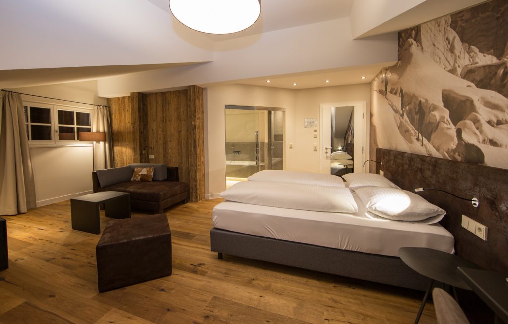 In our Panorama Suite, you’ll enjoy generous living space, elegant details, and a magnificent view – ideal for stylish getaways in Salzburger Land.